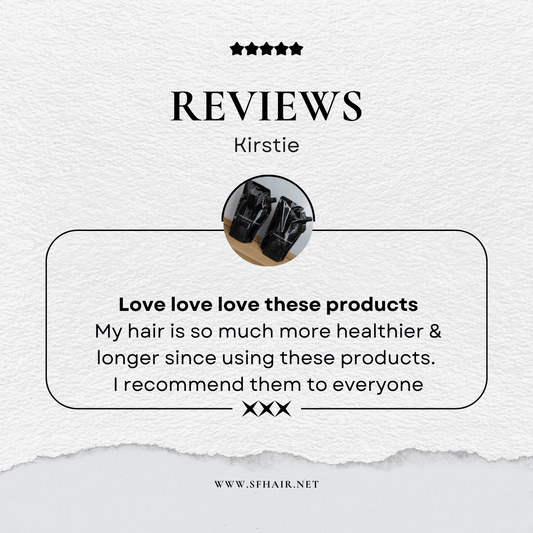 Love SFHaircare ever since I first ordered I havent looked back I will continue to use for the rest of my hair life; I feel the difference from before use to now my hair is so smooth nourished & a bonus its really helped with my ice cryotherapy hair treatments to last longer. Love love love SFHaircare