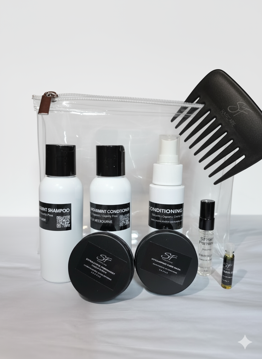 Experience our bestselling haircare system in travel-friendly sizes. This complete set features everything you need for healthy, manageable hair anywhere life takes you. Each product works in perfect synergy to cleanse, condition, and protect, delivering salon-quality results in convenient TSA-approved sizes.